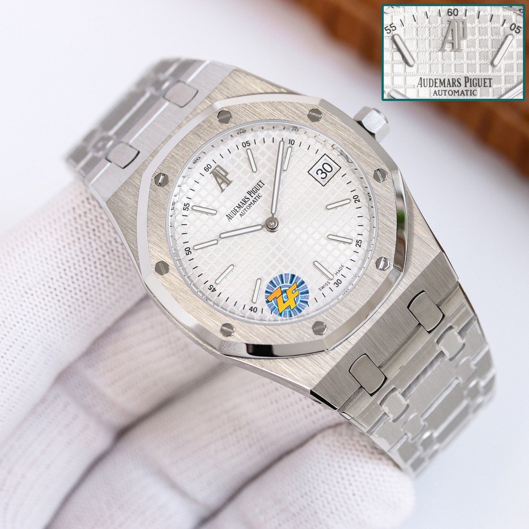 [Dial] Even in weak light, it can be dazzling and brilliant, which is another technical breakthrough of ZF. Engraved with "petite tapisserie" small plaid decoration, fluorescent-coated white gold three-dimensional hour markers and Royal Oak series fluorescent-coated hands are simple yet noble.
