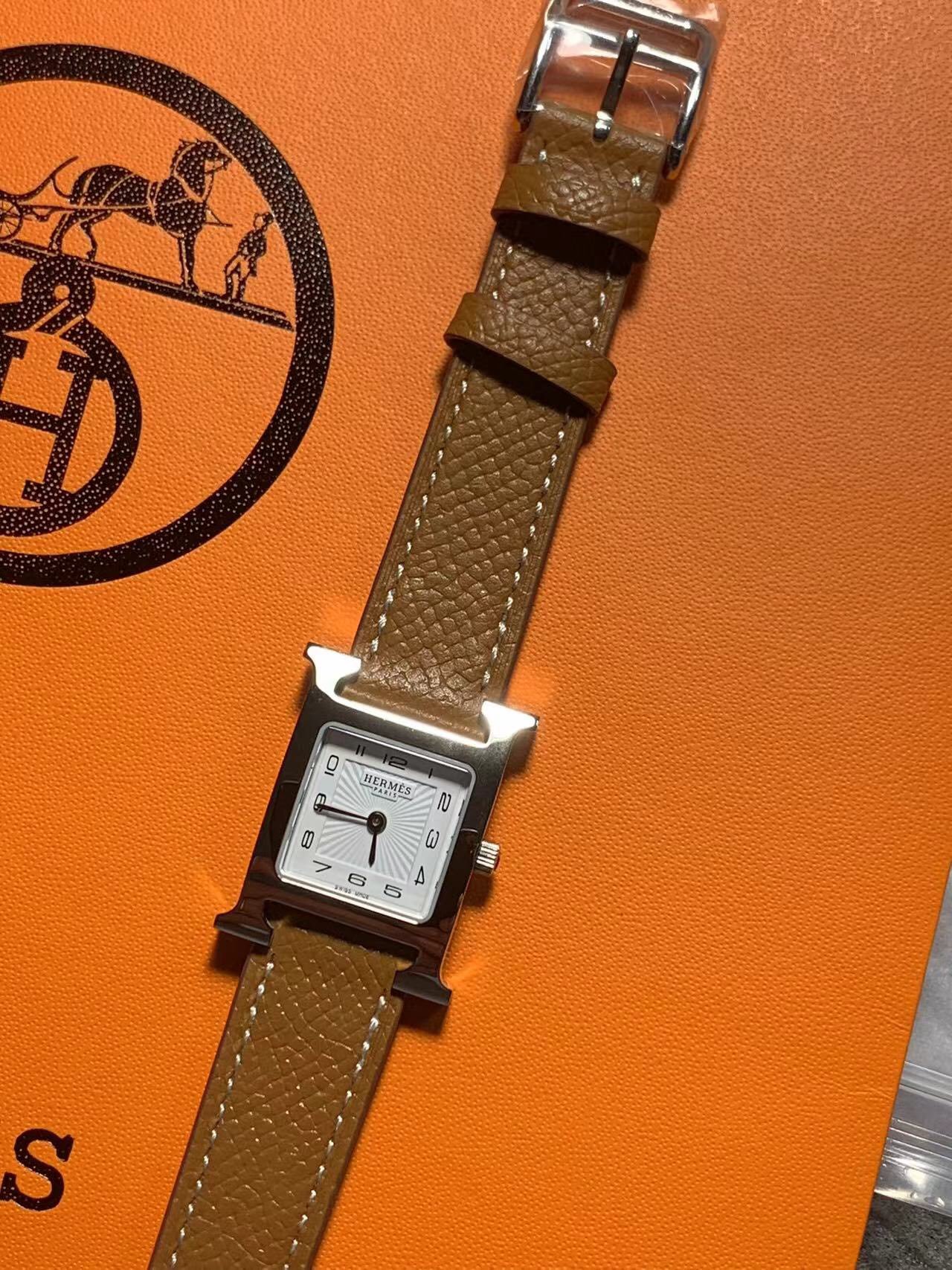 The new model debuts, HERMES HEURE H series, equipped with Swiss ETA original quartz movement, the case is made of imported 316L stainless steel, watch diameter: 21*21mm; Barenia calfskin strap, soft, delicate and shiny; white pad-printed Arabic numerals and rhodium-plated hands, anti-glare sapphire crystal mirror. The first choice for gift giving! Comes with original box packaging, first hand price!