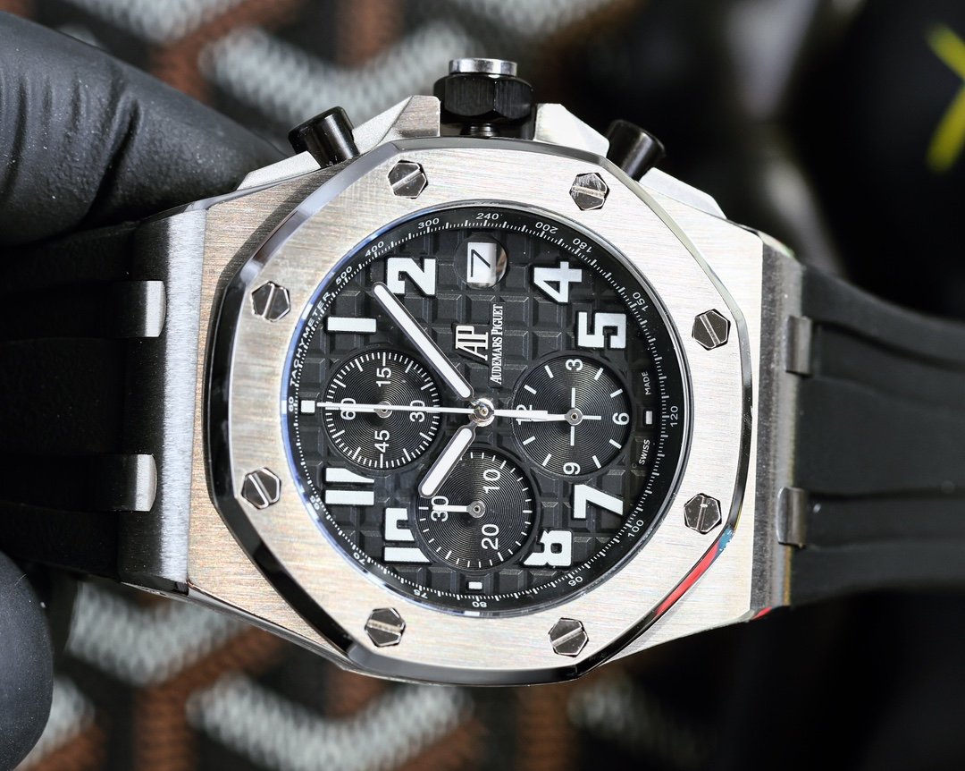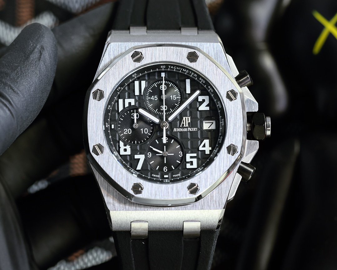 Audemars Piguet AP Royal Oak series coated glass, size 42mm*14mm, waterproof tape with AP original pin buckle, equipped with multifunctional quartz movement imported from Switzerland, octagonal brushed steel case with mesh surface, cold, domineering, a different tough guy
